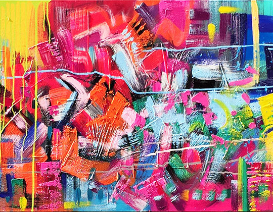 En estas obras abstractas, el color se convierte en lenguaje y el gesto en pensamiento. Cada trazo, goteo o mancha nace del impulso más instintivo, pero encuentra equilibrio en la intuición y el control. Aquí, el caos no es desorden, sino vida en expansión: un reflejo de lo que sentimos, de lo que no sabemos nombrar pero igual nos atraviesa.